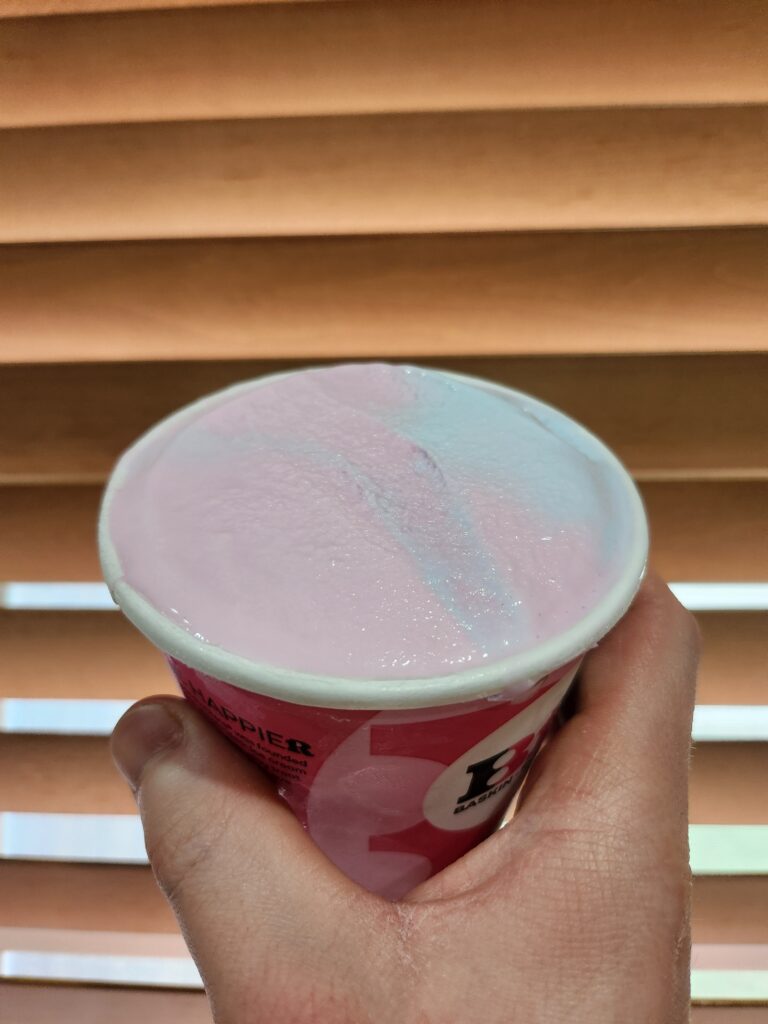 Opening the lid you notice those great colors, blue and pink. It looks delicious. First bite in, something seems wrong. I thought this was cotton candy flavor? I suppose you could say that, if the only flavor you wanted was sugar. This just tastes like sweet plain ice cream. It isn’t bad but it’s not what I expected. The quality of the ice cream itself is decent, but nothing compared to Ben and Jerry’s or Häagen-Dazs. It’s slightly airy, but not as airy as Breyers or Walmart’s Great Value brand. It’s nice and smooth. I like that much about it. Honestly this product kinda sucks. I still finished it. It’s not bad ice cream, I just think the product itself is bad. For something named cotton candy and with such vibrant duo colors, I expected more. Two flavors of cotton candy, blueberry and strawberry perhaps? But instead you get colorful pretty ice cream without any character.
