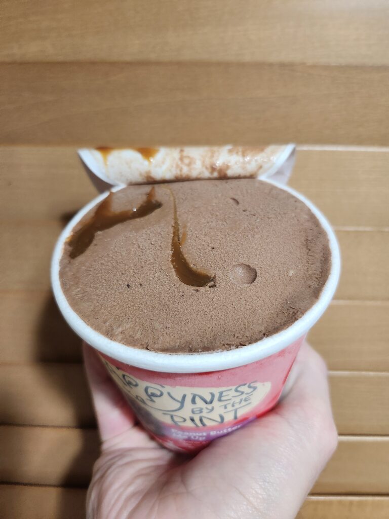 My favorite part has to be the caramel swirls and cookie dough bites. They’re always a welcome break from the very mediocre chocolate base ice cream. The problem is that they seem like a rarity, and so does everything else. The mix-in volume is much lower than that of your typical Ben and Jerry’s pint. The peanut butter bits don’t help, as they are small and don’t have a very good peanut butter flavor. I feel that the peanut butter’s flavor is masked by the rich chocolate ice cream base.