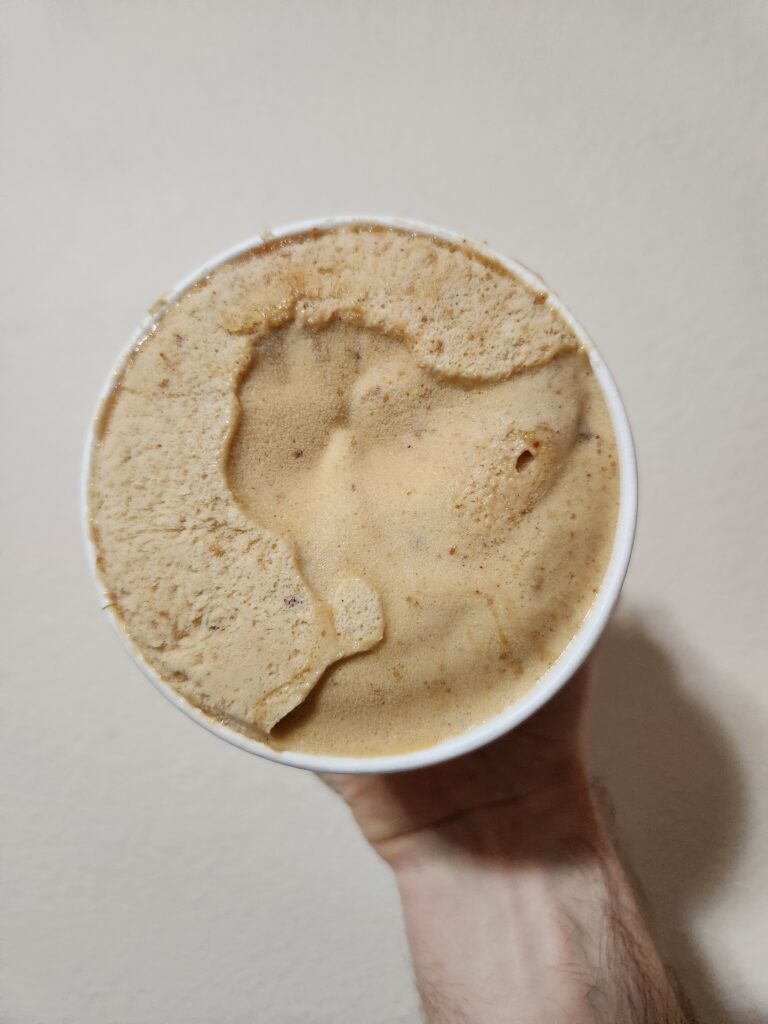 First thoughts judging from the looks of ice ice cream itself were that it’d be a bad quality ice cream. It has that cheap Great Value or Breyers look, that airy cheap almost watery look. Turns out it’s mediocre. The peanut butter flavor is just okay. It doesn’t taste enough like Reese’s in my opinion. It’s not a very strong peanut butter flavor. I think it’s due to the fluffy, lightness of the ice cream. This isn’t dense ice cream like Ben and Jerry’s, this is again like Breyers or Great Value. It does have chunks of Reese’s in there, which makes up for the light peanut butter flavor the ice cream has. It’s not enough for my tastes. More Reese’s chunks would help, but it falls short. It also is lacking in chocolate. The peanut butter ice cream itself, which is what you’ll be tasting most of the time, is simply too light tasting. The quality of the ice cream tastes cheap and “watered down” I wouldn’t recommend this product.