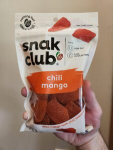 - Snak Club Chili Mango Reviewby Mikey DoesDate reviewed: 6/4/2025 Mikey’s state: High Bought From GoPuff Dark orange in color, a good amount of mango in the bag. Upon taking the first bite…